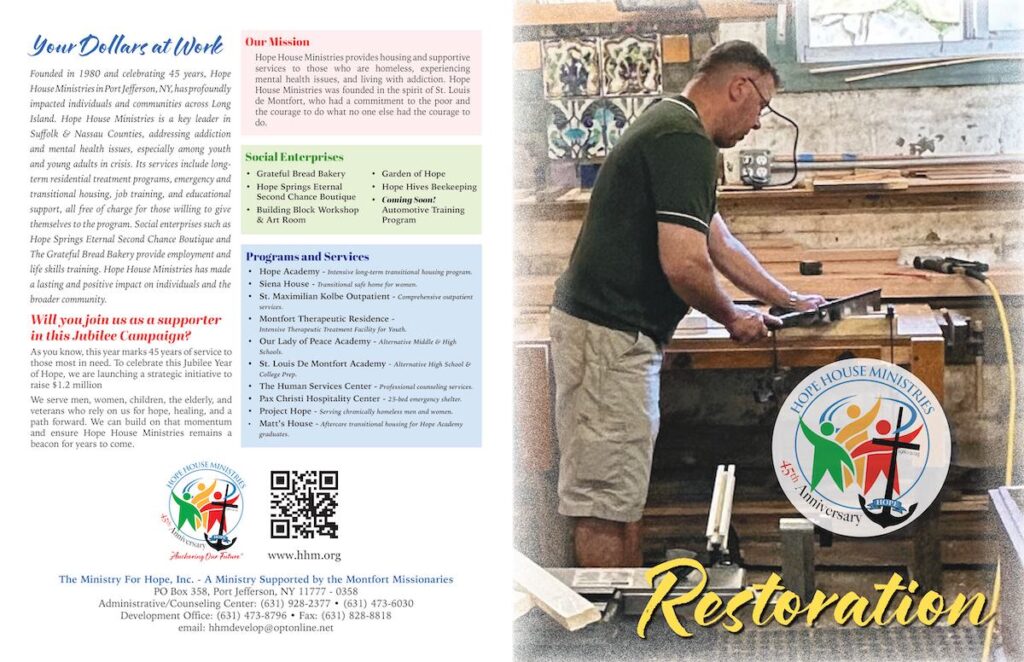 For the past 45 years the State of New York has recognized Hope House Ministries in Port Jefferson as a key leader in Suffolk & Nassau Counties addressing addiction and mental health services.  In that time, the State of New York has invested millions of dollars in Hope House Ministries via contracts aimed to support Hope Academy, Montfort Therapeutic Residence and Pax Christi Hospitality Center programs.  The Office of Family and Children, The Office of Temporary Disability Assistance and Suffolk County’s Department of Social Services all attest to its successful track record.